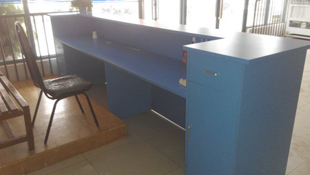 (3)工作台技术要求:高密度免漆板;双层;上层宽200mm;两头做柜子