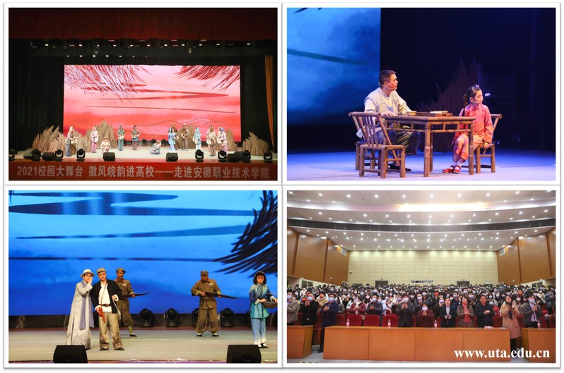本网讯(院团委通讯员 刘心洁 石可)12月9日晚上,由中共安徽省委宣传部、安徽省文化和旅游厅、安徽省教育厅共同主办,安徽省铜陵市艺术剧院有限公司、amjs澳金沙门线路首页承办的2021年校园大舞台“徽风皖韵进高校”活动,在我校大学生活动中心精彩上演。党委委员、组织部部长杨林国,部分职能部门负责人,各二级学院(部)党总支书记、团总支书记,各学院学生代表观看了演出。