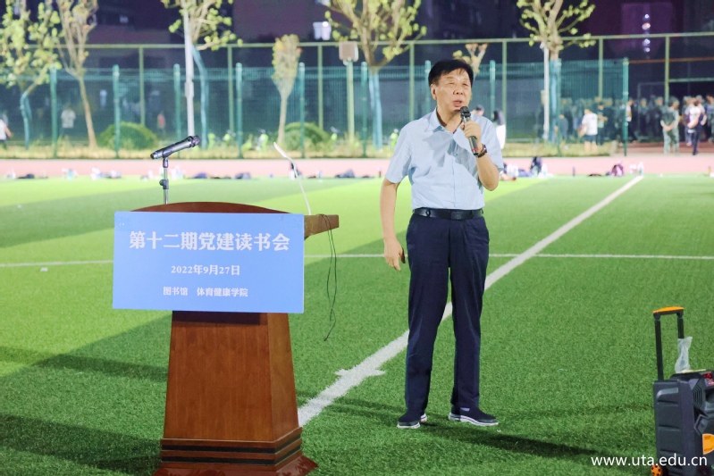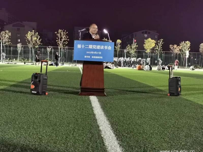 本网讯(图书馆通讯员 陈茂)9月27日晚间,由图书馆和体育健康学院联合举办的“席地而坐·斯文在兹”第十二期党建读书会在学院田径体育场顺利举行。院党委书记李方泽,党委委员、副院长杨林国与其他书友一道,席地而坐、同享阅读之乐,畅谈阅读感悟。本期读书会由图书馆馆长陈纲主持。