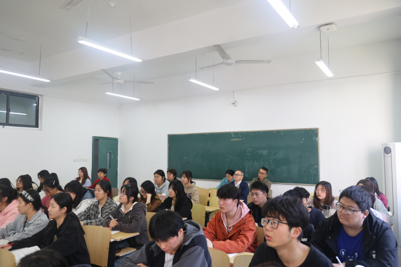 调研前,盛鹏一行前往明德楼305听取了马克思主义学院教师李自伟讲授的《习近平新时代中国特色社会主义思想概论》课程。盛鹏就课程内容深度、课堂纪律情况等方面与班级师生进行了亲切交流。
