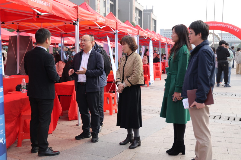 为促进毕业生高质量充分就业,助力新站高新区企业招才引智,服务辖区经济社会发展,11月15日下午,学院举办2023年秋季新站高新区"合肥千企万岗请您来"招才引智活动专场招聘会。院党委书记李方泽,院党委委员、副院长宣岩松,合肥新站高新区人才服务中心主任李慧洁等领导到现场指导工作。就业与创业创新指导中心、教务处负责人,二级学院党政负责人、毕业班辅导员、就业与创业创新指导中心工作人员到现场指导学生应聘。