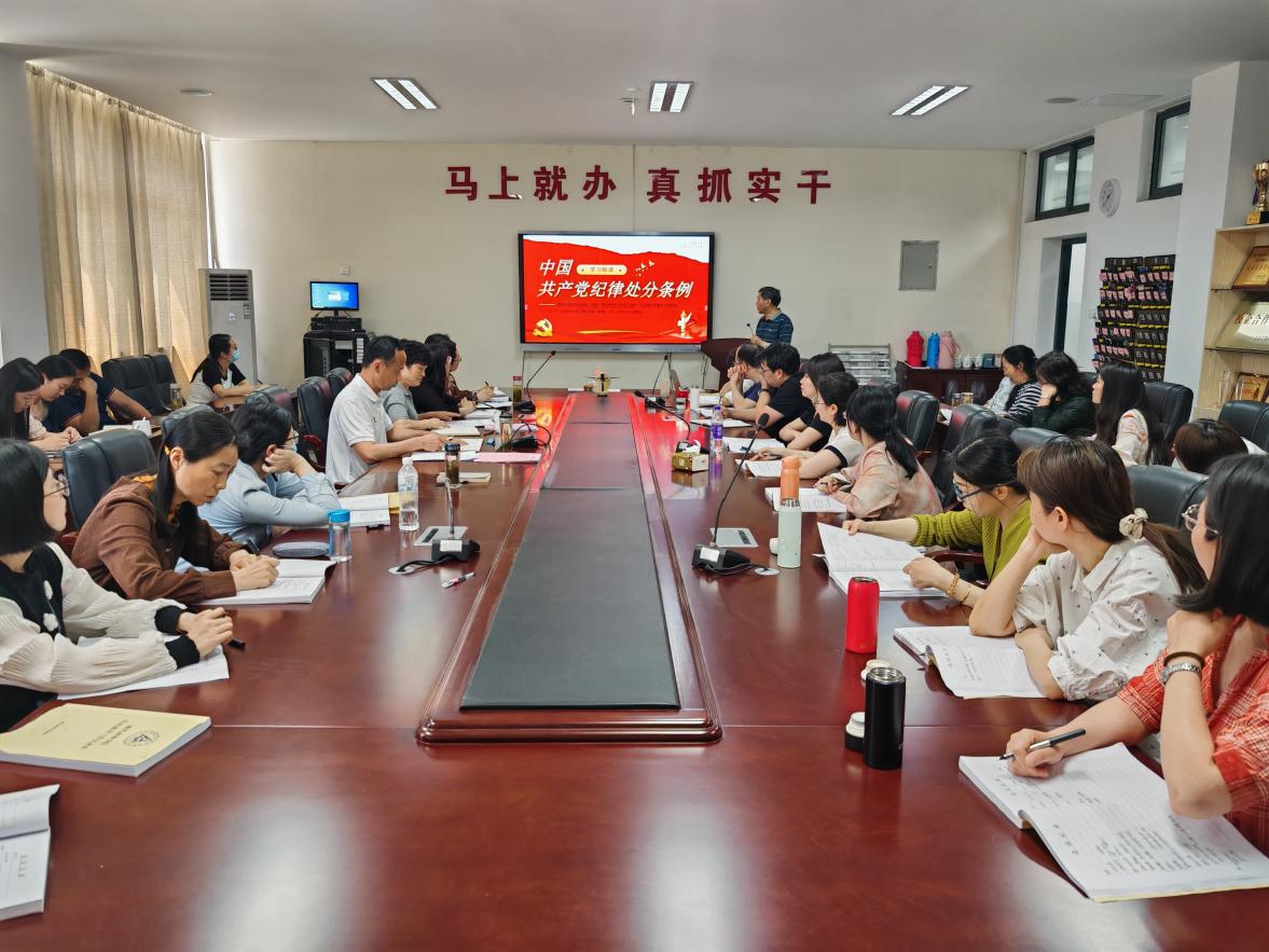 按照原原本本学、逐字逐句学的要求,党总支委员领学了《中国共产党纪律处分条例》第一篇总则部分。组织员王培俊上了党纪学习教育主题党课,他对照《中国共产党纪律处分条例》原文,紧密联系教师的思想、工作、生活、作风实际,深入浅出地从《中国共产党纪律处分条例》的概况、修订重要意义、亮点解读三个方面进行解读和阐述,教育引导全体教师要严明政治纪律政治规矩、保证贯彻党的组织路线,时刻保持廉洁作风,筑牢拒腐防变底线。