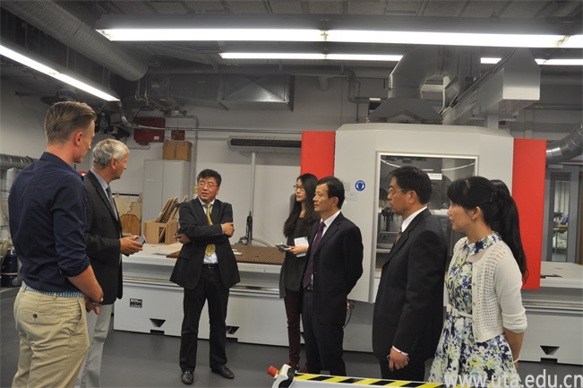 会谈结束后,亓四华一行在该校实训室主任哲伯瑞希特教授陪同下,实地参观考察了该学院的木材数控加工实训室、工业4.0模拟实训室、语言实训室、多媒体录播实训室等。通过对上述实训室的实地考察,学院考察团一行充分领略到具有德国职业教育特色的“学中做、做中学”的职业教育模式的优势。