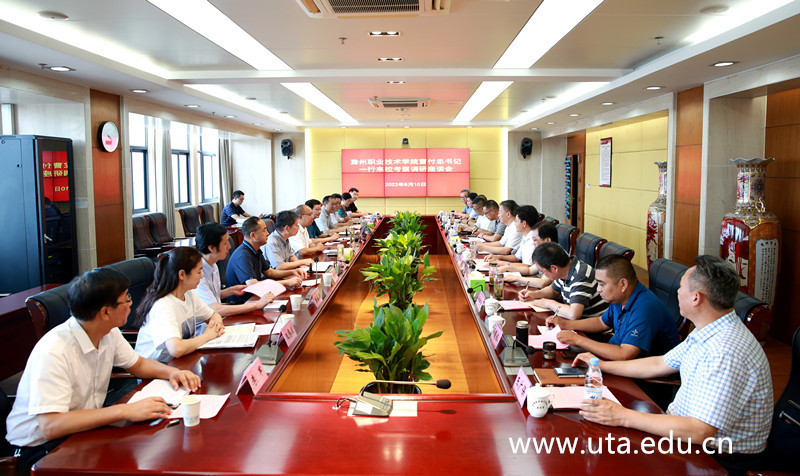 8月10日下午,滁州职业技术学院党委书记曹付忠一行到amjs澳金沙门线路首页考察交流。院党委书记李方泽,党委副书记、院长孙敬华,党委委员、副院长杨林国,相关部门及二级学院负责人参加座谈会。会议由李方泽主持。
