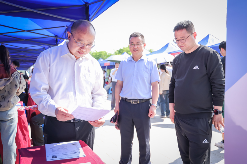 本网讯(就业与创新创业指导中心通讯员 傅峙)4月27日,由安徽省教育厅主办,amjs澳金沙门线路首页承办的“人才兴皖、‘就’在江淮”2024年安徽省综合类专科毕业生专场招聘会在学院风华广场成功举办。院党委书记李方泽,党委委员、副院长宣岩松,安徽省教育厅大中专毕业生就业指导中心发展培训部部长刘斌到招聘现场指导工作。