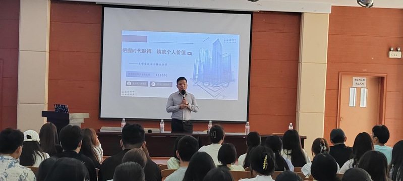 余海波分析了当前经济形势及未来趋势对择业就业的影响,阐述了人工智能发展对物业管理行业带来的冲击与价值重构,并以自身成长经历为案例,引导学生们树立正确的就业和择业观,提出强大自我调节能力、内心自洽不内耗、保持旺盛精力、找到标杆四点秘诀。他建议同学们“先就业,再择业,再调整,再热爱”,并以“流水不争先后,而争滔滔不绝”勉励大家摆正学习态度,投身就业创业的奋斗中。