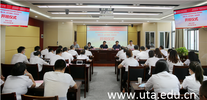本网讯(发展规划处通讯员 王奎)8月3日上午,学院承办的2022年京和职业教育协作项目——职业学校管理人员(骨干教师)交流访学培训班开班仪式在图文信息中心九楼视频会议室举行。党委副书记、院长孙敬华,新疆和田地区教育工委副书记、和田职业技术学院党委书记王志文出席仪式并致辞;和田职业技术学院党委宣传部部长李娟,来自新疆和田地区中高职院校的30名参培学员,相关部门负责人和教师代表参加仪式。开班仪式由党委委员、副院长杨林国主持。