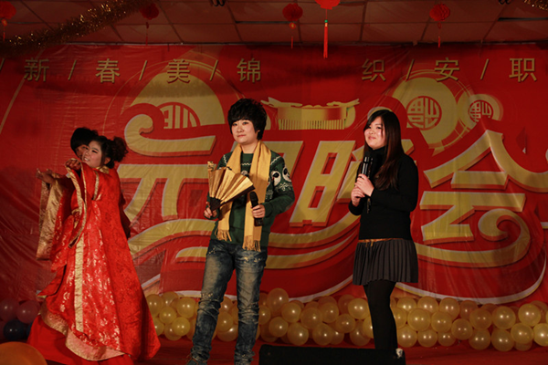 带去美好的祝愿,送来新春的暖意,12月28日晚的安职礼堂,掌声、歌声与祝福声交织成一片欢乐的海洋,以“纺新春美锦,织安职新篇”为主题的我系2012年元旦晚会闪亮登场。