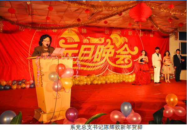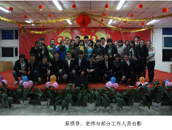 晚会开始前,系党总支书记陈辉致元旦贺词,总结了系部过去一年来所取得的成绩,对大家提出了殷切的希望,并向广大师生致以新春的问候与衷心的感谢。闭幕时,系领导、全体班主任、辅导员老师与学生演员合影留念,大家相互勉励,共庆新春,共话发展,会场上洋溢着温馨的气氛。