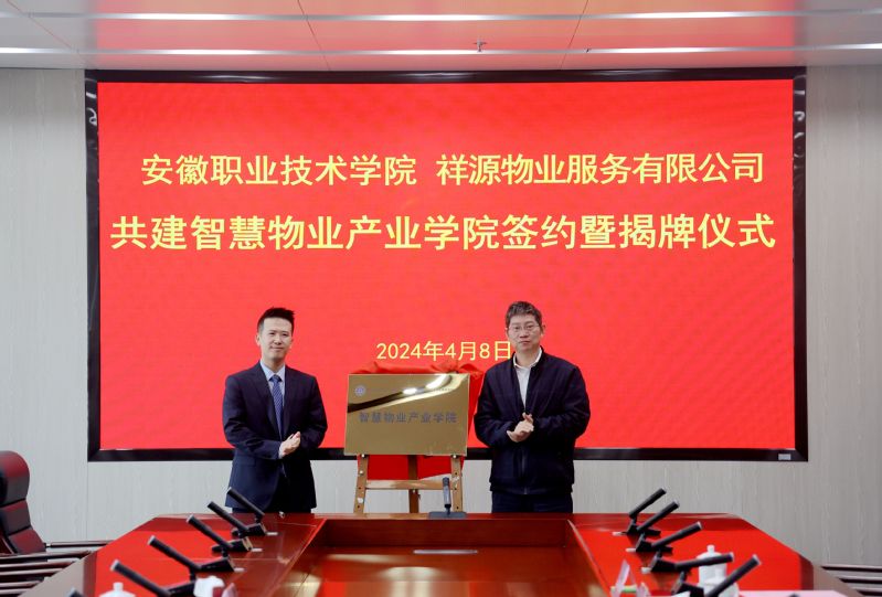4月8日,amjs澳金沙门线路首页与祥源物业服务有限公司,合作共建的智慧物业产业学院签约揭牌仪式在至公楼第五会议室隆重举行。党委委员、副院长杨林国、祥源物业服务有限公司副总经理刘通及助理总经理文娟出席此次活动。学院相关职能部门负责人和公共管理学院党政负责人参加了仪式。仪式由教务处处长袁春雨主持。