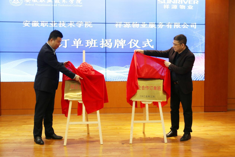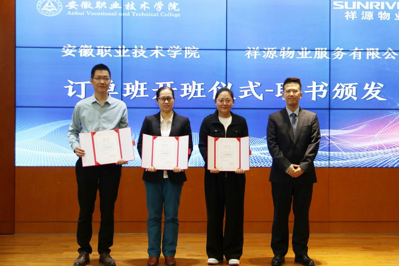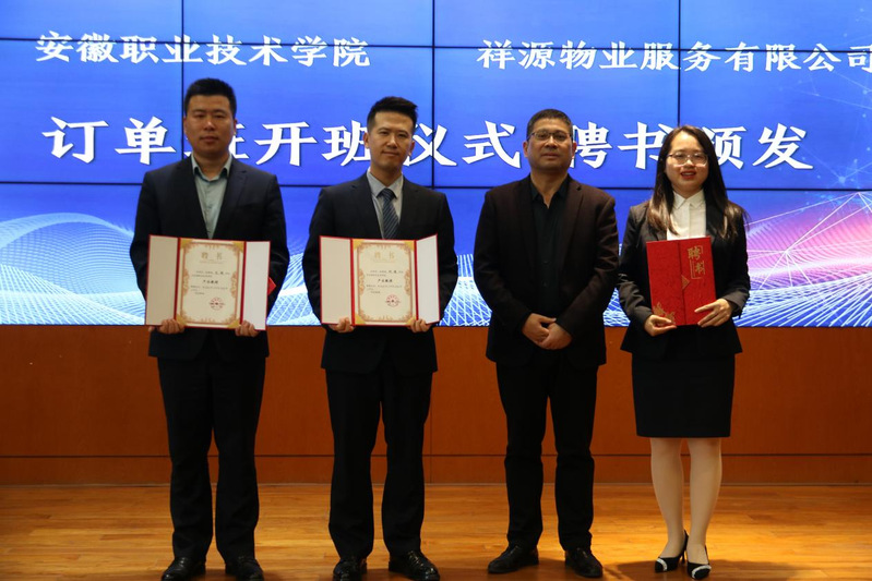 安徽祥源物业服务有限公司副总经理刘通,对学校领导、师生表示热烈欢迎,对订单班开班表示热烈祝贺,对amjs澳金沙门线路首页祥源物业“智慧物业产业学院”成立以来校企双方在人才培养、行业需求、师资互派等方面工作予以高度认可,对订单班的全体同学提出了“全身心投入,积极转变角色,努力成为企业的出色员工”的要求。