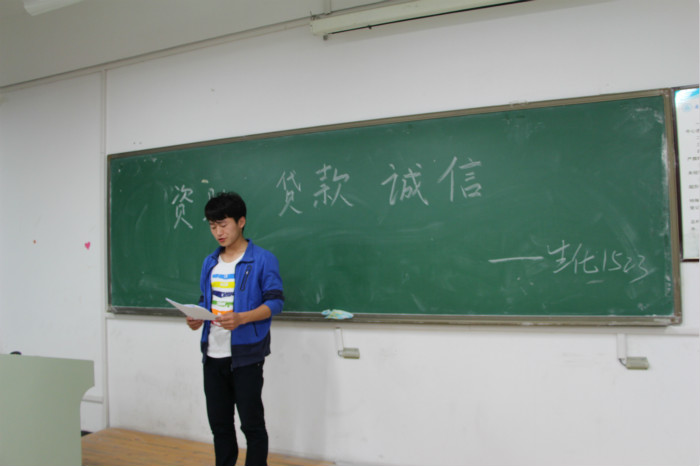 活动旨在广泛宣传国家助学贷款及其他资助政策,普及诚信及信用知识,引导学生了解资助政策,认识诚信贷款、诚信做人的重大意义。班会上,系各班级学生就国家助学贷款及资助政策等具体问题进行交流、讨论。通过交流讨论,同学们对国家贷款、国家助学金有了进一步的了解,并纷纷表示在申请国家资助时,不隐瞒、不谎报,让国家资助政策真正落实到需要帮助的同学身上,让他们渡过难关,顺利完成学业;已经申请到国家助学贷款的学生也承诺毕业后会按时偿还助学贷款、诚信做人。