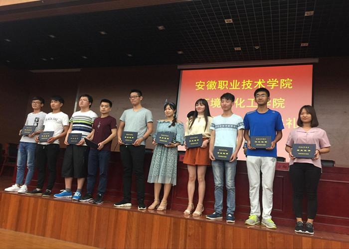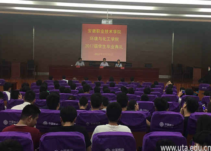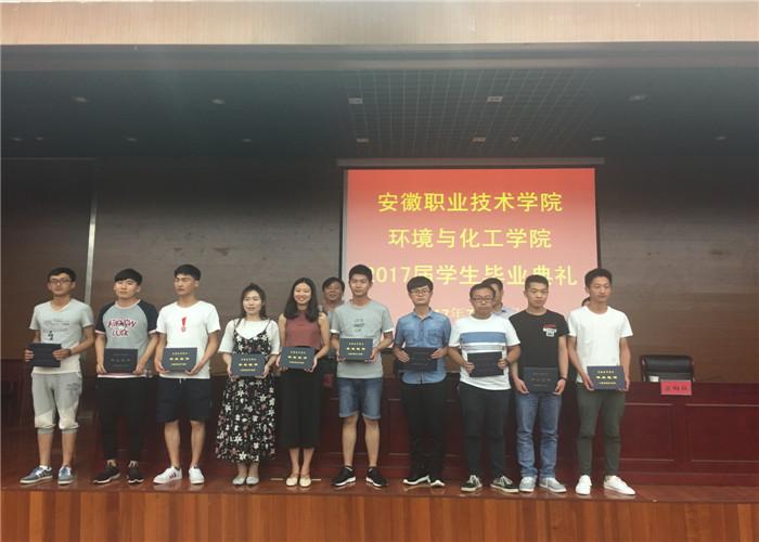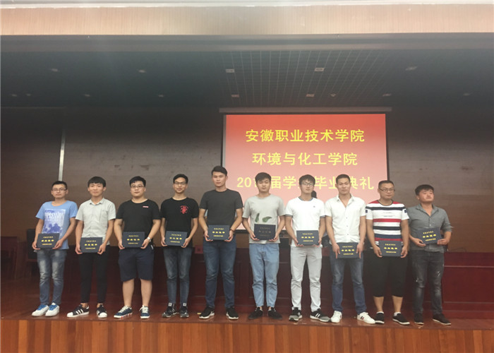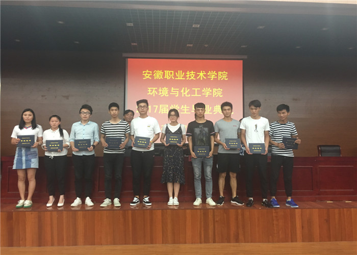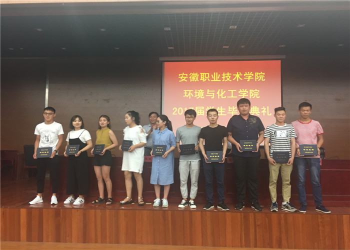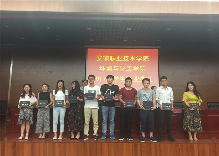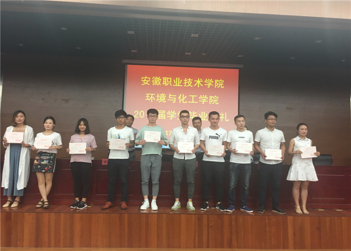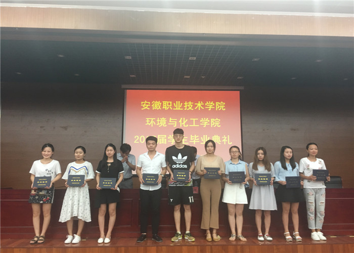 典礼在庄严的国歌声中拉开帷幕。环境与化工学院院长方向红代表学院师生致辞,她希望同学们走上工作岗位后要牢记母校校训、传承母校学风,弘扬“责任、奉献、担当”精神,为“绿色化工”、“科技化工”和“安全化工”做贡献。随后,教师代表徐文斌上台发言,他满怀深情地回顾了进校三年来的难忘时光,并对全体毕业生寄予美好祝福。高广�同学作为毕业生代表上台发言,她表达了对母校的依依不舍之情,并为母校送上了诚挚的祝福,希望自己在未来的征程中用优异的工作业绩回报母校的培育和教导。毕业典礼上,学院为荣获“2017年安徽省普通高等学院品学兼优毕业生”称号的同学颁发了荣誉证书。
