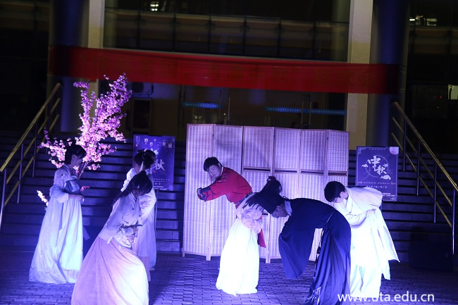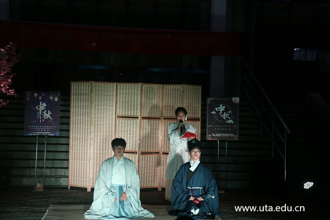 一首欢快歌曲《花好月圆夜》拉开了本次活动的序幕。主持人首先从中秋节的来源、传说等方面向大家普及了传统节日的知识,随后,在汉礼展示环节中,知礼国学社的同学们身着直裰、圆领袍、齐腰对襟襦裙、交领襦裙等传统服饰,向观众们展示了汉礼中的立容、坐容、行礼动作,并指导现场观众认真地学习了汉礼。在互动环节中,国学社的射手向同学们展示了中国古代六艺之一的射艺,并展示四方礼,同学们兴致勃勃地参与了投壶、猜灯谜、画灯笼等传统文化活动,现场气氛热烈,其乐融融。最后,环化学院文艺团表演了《早春的树》、《安河桥》等文艺节目,精彩的歌舞和优美的吉他弹唱再次把现场气氛推向高潮。