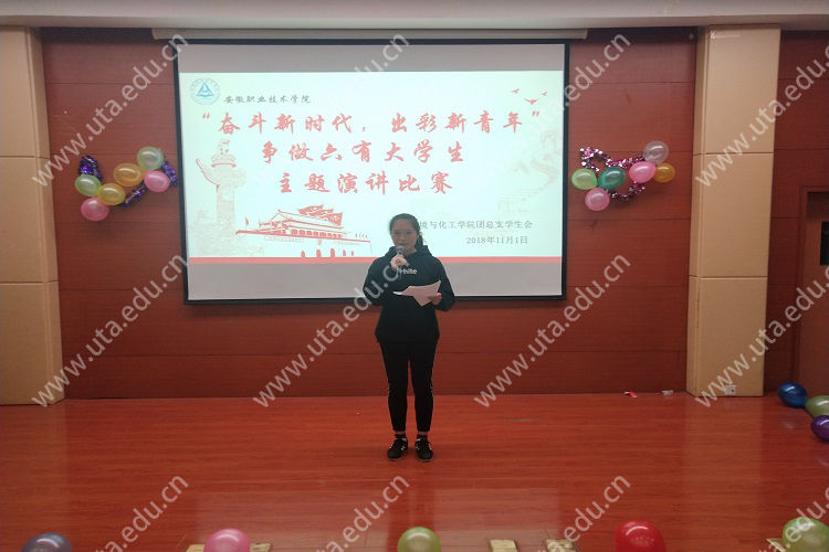 为在广大学生中深入开展理想信念教育,进一步学习、宣传、贯彻落实习近平总书记提出的“争做‘六有’大学生”的要求,环境与化工学院于11月20日在教A附楼二楼举办了以“奋斗新时代,出彩新青年”为主题的争做“六有”大学生演讲比赛。学院团总支学生会全体成员和部分2018级学生参加了本次活动。