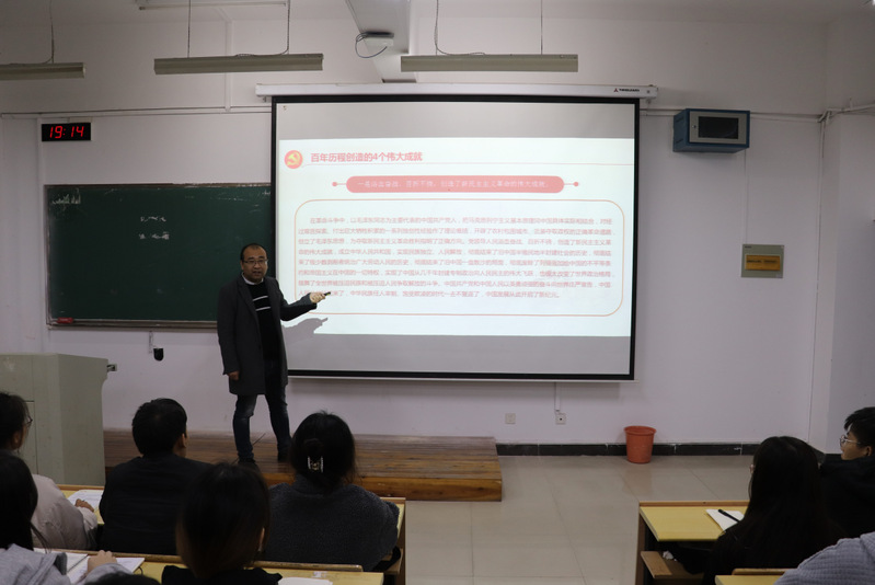 为深入学习宣传贯彻党的十九届六中全会精神,12月9日,环境与化工学院开展党总支书记讲党课活动,学院党总支副书记郝建文作了题为“党的十九届六中全会精神解读”的专题党课。学院学生党员、入党积极分子100余人参加了党课学习。