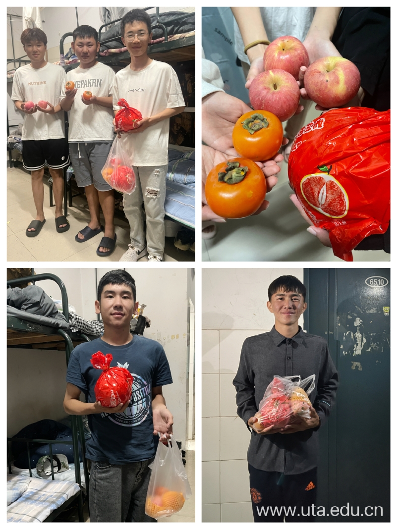 浓浓暖意,殷殷期盼。学院贯彻“学生不离校,温暖不缺位”理念,融思政教育于人文关怀之中,走访慰问了因疫情留校的外省和少数民族学生宿舍,致以节日的祝福并送上“秋日水果礼包”,包括柚子、柿子、苹果等,寓意“有你真好”“事事如意”“平平安安”,营造了爱党爱国、团结奋进、暖心关怀的浓厚校园氛围。党总支负责人郝建文叮嘱大家,要好好学习、热爱生活、追逐梦想,做担当民族复兴大任的时代新人。团总支书记章婧婷鼓励大家积极参与校园文化活动,在校过一个开心、安心、舒心、放心的节日。