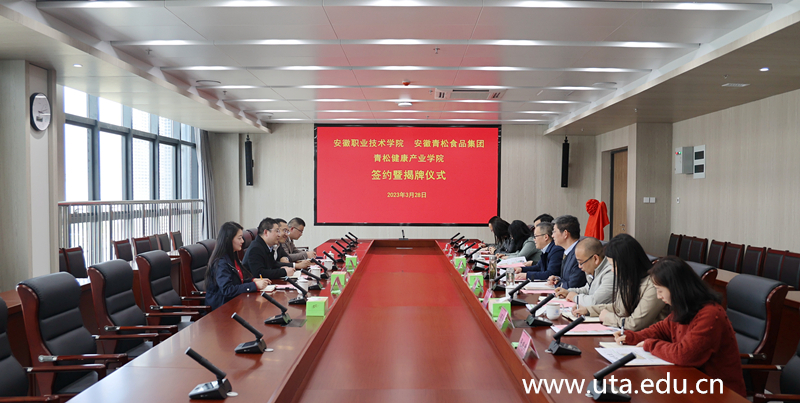 (环境与生命健康学院 张晓晴)3月28日下午,amjs澳金沙门线路首页与安徽青松食品集团在至公楼第五会议室举行青松健康产业学院签约暨揭牌仪式。安徽青松食品集团总经理陈明山一行,学院党委副书记、院长盛鹏,党委委员、副校长杨林国出席签约仪式。教务处、发展规划处、环境与生命健康学院党政负责人及部分骨干教师参加仪式。仪式由杨林国主持。