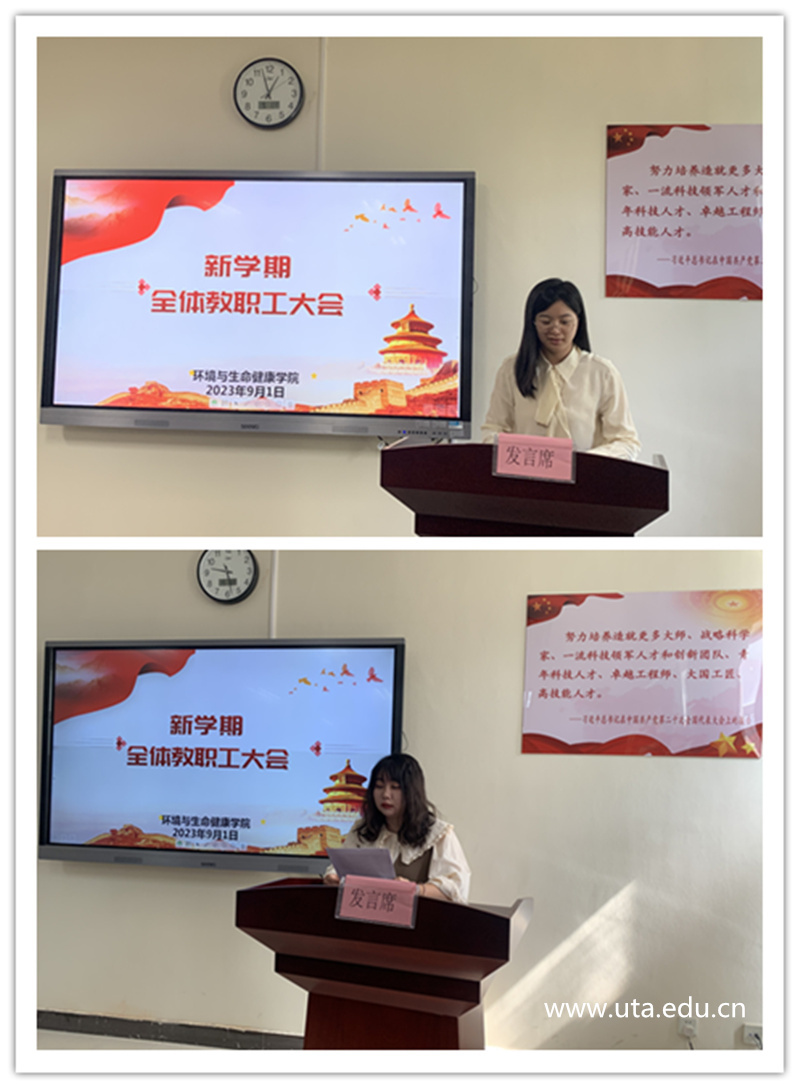 9月1日,环境与生命健康学院在化工310召开2023年秋季新学期全体教职工大会。院党委委员、副院长杨林国出席会议并讲话,学院党政领导、全体教职工出席会议,会议由环境与生命健康学院党总支副书记郝建文主持。