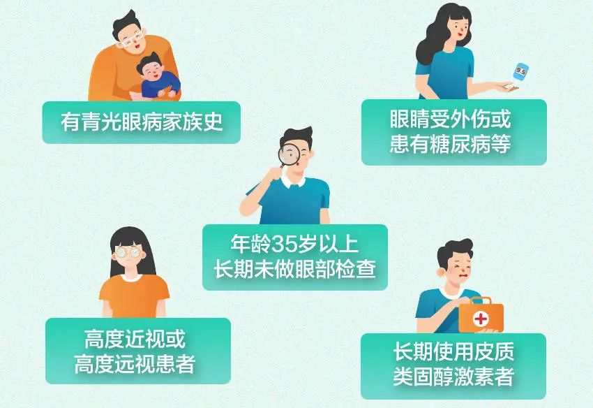长期用激素、糖尿病、高血压患者:疾病或药物可能诱发青光眼。