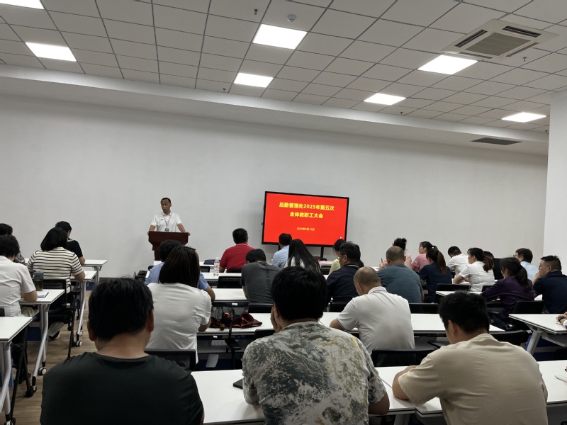 5月13日,后勤管理处召开2025年第五次全体教职工大会暨政治理论学习会。后勤管理处全体员工和物业、食堂及部分第三方服务单位管理人员参加会议。