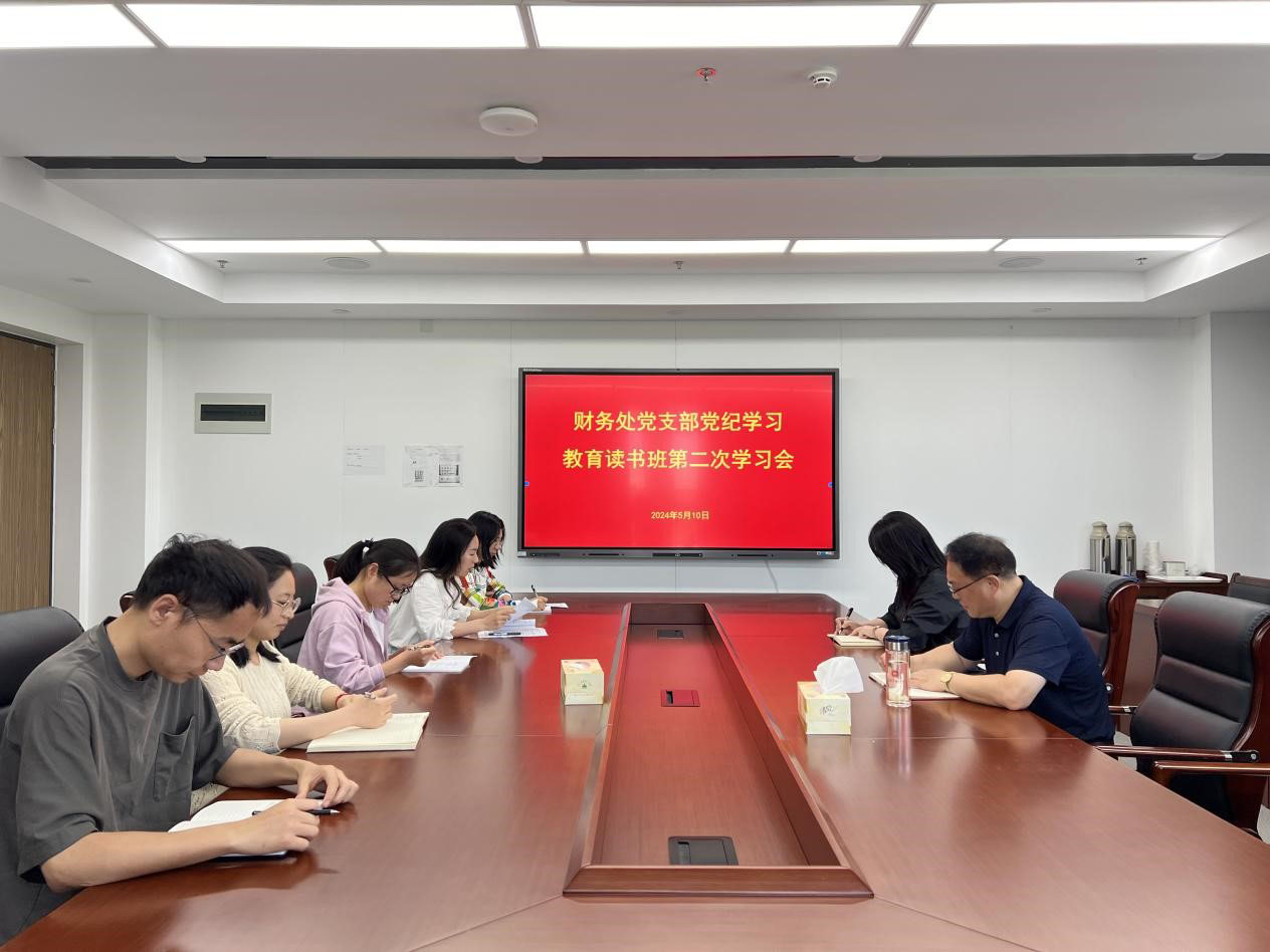 5月10日下午,财务处党支部在至公楼第四会议室召开党纪学习教育读书班第二次学习会,财务处全体党员及入党积极分子参会,会议由支部书记唐笑林主持。
