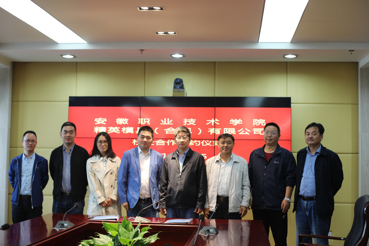 10月25日上午,我校与精英模具(合肥)有限公司校企合作签约仪式在九楼会议室举行。精英模具(合肥)有限公司模具部经理胡孔贵,人事行政主管李艳清,党委委员、组织部部长杨林国,建筑工程学院党政负责人等出席。建筑工程学院副院长蒋庆华主持仪式。
