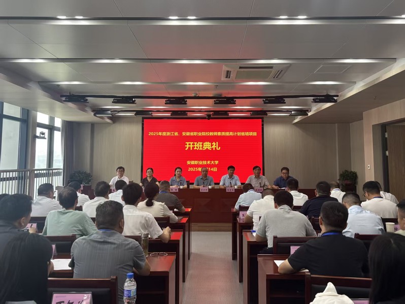 7月14日,由浙江省教育厅主办、安徽省教育厅主办,我校承办2025年度浙江省、安徽省职业院校教师素质提高计划省培项目开班典礼暨“以作风建设新成效推动职业教育高质量发展”专题讲座在至公楼第七会议室成功举办。学校党委书记李方泽、安徽省中等职业学校教师继续教育中心主任张娴出席典礼。继续教育学院负责人、智能制造学院负责人、汽车工程学院负责人、工匠学院负责人、教师代表、班主任代表、联络员和全体学员参加开班典礼,典礼由学校副校长张智清主持。