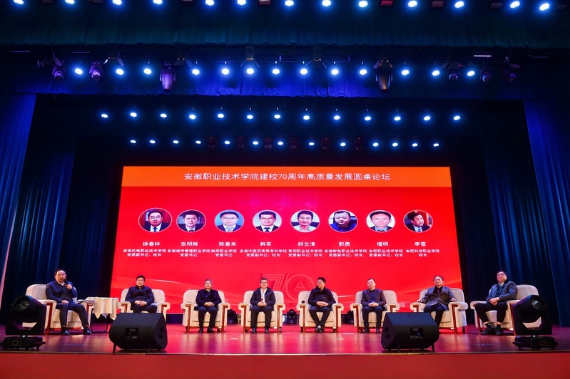 圆桌论坛环节,邀请了安徽城市管理职业学院党委书记张明辉,徽商职业学院党委书记陈春来,安徽机电职业技术学院党委副书记、院长徐春林,安徽中医药高等专科学校党委副书记、校长韩军,阜阳职业技术学院党委副书记、院长郝文清,安徽邮电职业技术学院党委副书记、院长郭勇,合肥职业技术学院党委副书记、院长檀明,合肥科技职业学院院长李雪等8位领导专家,围绕“深化产教融合,服务区域经济发展”这一主题,展开深入的讨论和交流。与会专家、领导纷纷建言献策,为推动安徽省职业教育的高质量发展出谋划策。