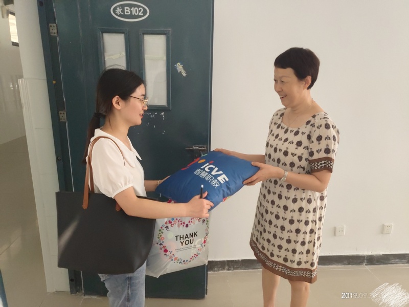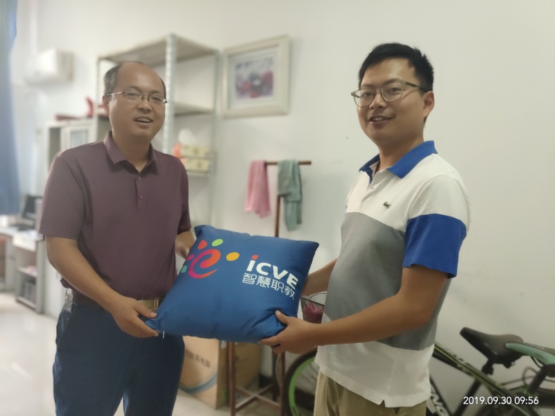 (科研处通讯员:赵勋)9月30日上午,在国庆70周年来临之际,智慧职教技术服务负责人王瑞来我校给使用混合教学的一批老师发放福利,赵勋代表科研质量党支部进行了接待并陪同其一起给老师送去节日的祝福。