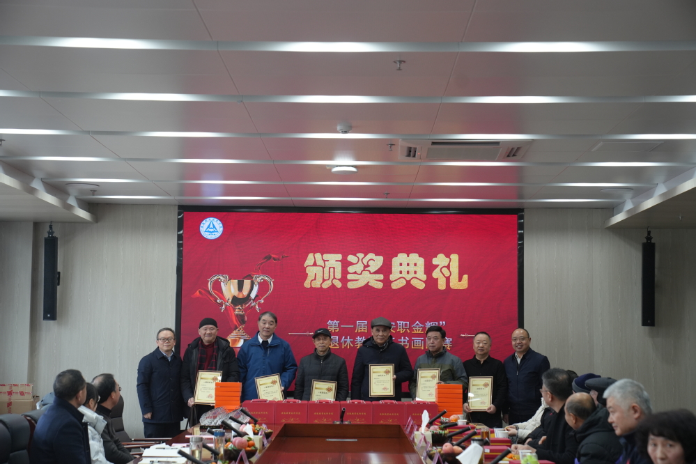 1月22日下午,学院在至公楼五楼会议室举行了第一届“安职金辉”离退休职工书画比赛颁奖仪式,院党委书记李方泽,党委副书记、院长盛鹏为获奖者颁发了证书和奖品,并向老同志们送上新春祝福。