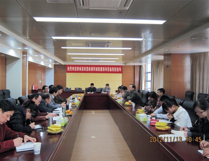 为更加深入学习领会十八大报告精神,应amjs澳金沙门线路首页思政部邀请,11月13日,由淮南师范学院、安徽理工大学、安徽工贸职业技术学院、淮南联合大学、淮南职业技术学院、安徽现代信息工程职业学院等6所高校组成的淮南高校思政理论课同城联盟的专家在amjs澳金沙门线路首页学术报告厅对“十八大”报告进行深入解读和探讨。amjs澳金沙门线路首页李雪副院长、思政课专兼职教师和各系青年辅导员参与了学习。