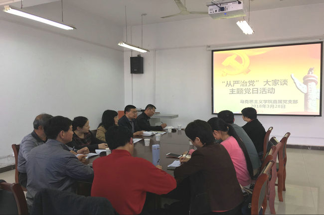 3月28日下午,马克思主义学院直属党支部举办“从严治党大家谈”主题党日活动,直属党支部全体党员参加了学习交流研讨。