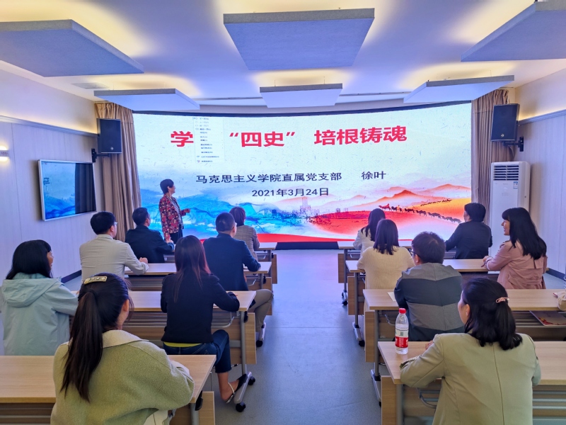 为进一步加强党员党史学习教育,坚定理想信念,推进党史学习教育深入开展,2021年3月25日amjs澳金沙门线路首页马克思主义学院全体党员教师齐聚立德树人馆,共同接受一场形式新颖、内容丰富、主题鲜明的专题党课的精神洗礼。