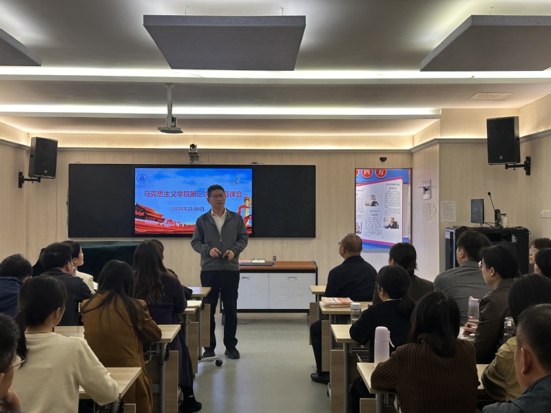 为推动思政课程内涵式发展,促进教师间交流互鉴,11月6日下午,马克思主义学院在立德树人馆教室召开秋季学期第三次集体备课会,学院党委书记李方泽,党委委员、副院长杨林国莅临参加,马克思主义学院党政负责人、全体专职思政课教师参会。