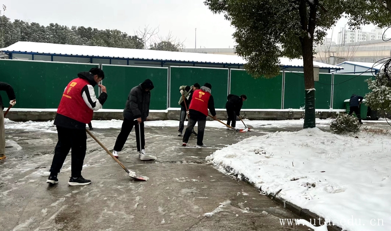 近日,合肥地区迎来强降雪天气,美丽的安职校园一片银装素裹,披上了美丽的冬日衣裳。但积雪也给师生的出行带来一定的不便和安全隐患。学院果断出击,通过螺丝钉志愿服务队组织召集党员、团员充分发挥先锋模范作用,以至毅楼为中心,对实训楼群主干道宽敏路南侧200米区域、汽车综合实训中心周边区域进行积雪清理。