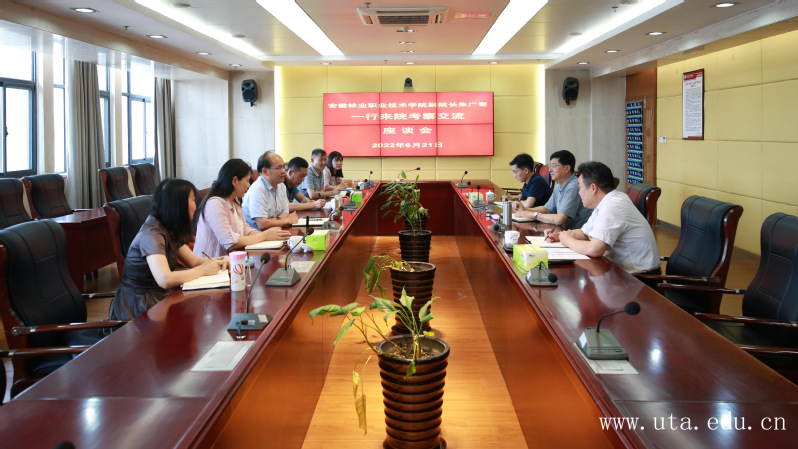 (人事处通讯员 涂晓辉)6月21日下午,安徽林业职业技术学院副院长朱广奇一行来amjs澳金沙门线路首页考察交流。院党委委员、副院长张智清,人事处负责人及相关人员接待了客人一行。会议由张智清主持。