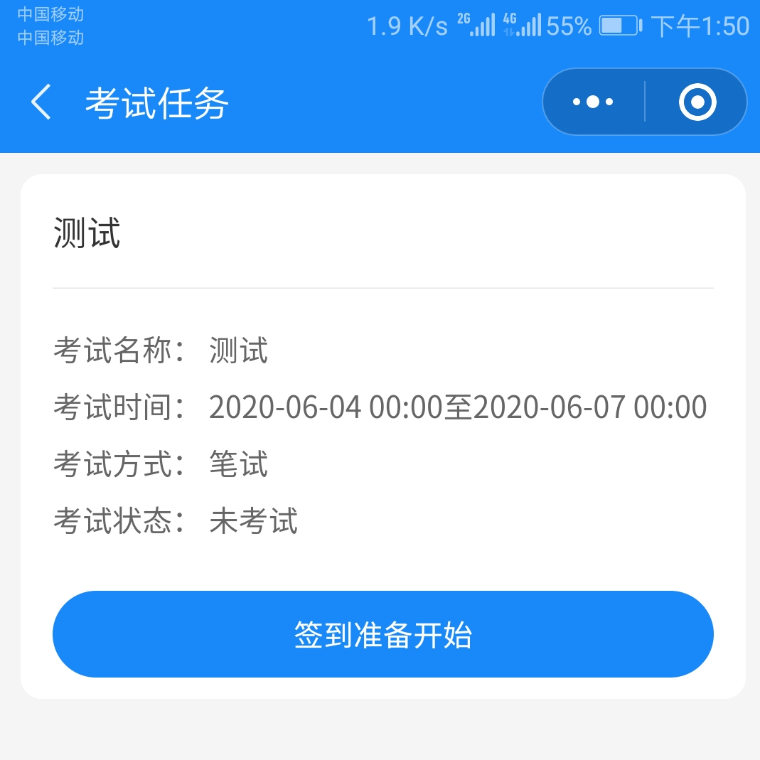 6、点击图5中“考试任务”,出现图6所示界面;点击图6中“签到准备开始”,进入图7所示界面;