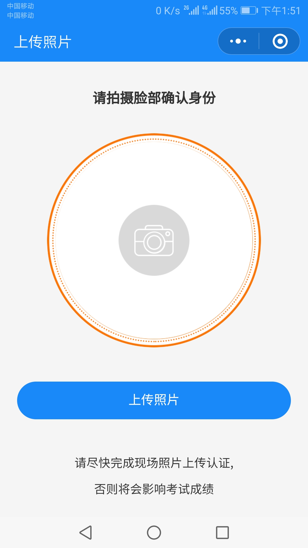 11、确定交卷后,再次点击图10中的“上传照片”,开始比对(注:在拍照时将前后摄像头调换,拍自己头像上传);