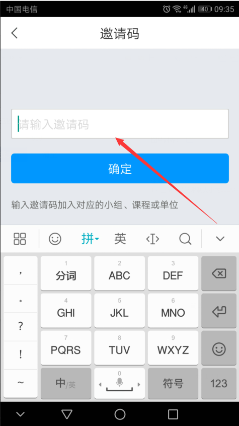 三、根据如下三图提示请输入学院邀请码:yzahztsg