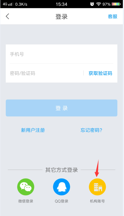 一、打开移动图书馆2.0,在“我的”页面,点击“登录”,选择“机构账号”。