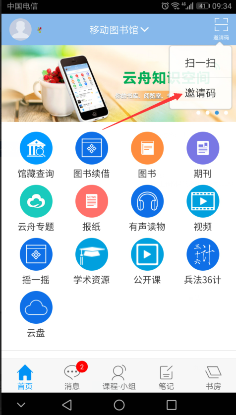 1、手机扫描二维码,下载移动图书馆2.0客户端。