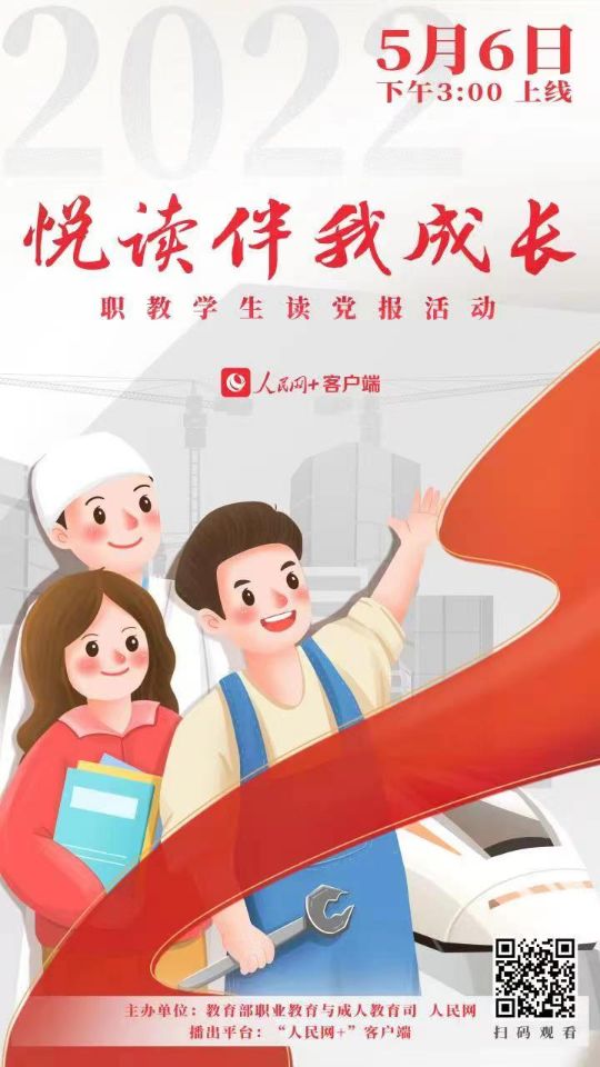党报像一扇窗,让我们看到精彩世界!5月6日(周五)下午3:00~4:00,教育部职成司、人民网将以线上会议形式举办“悦读伴我成长”职教学生读党报活动启动仪式。根据会议有关文件要求,现将组织观看“悦读伴我成长”职教学生读党报活动启动仪式的相关工作通知如下: