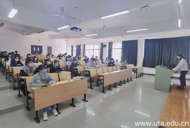参与讲座的人员严格按照学院防疫要求,佩戴口罩进场。讲座分别从四级听力、写作、阅读三个方面对四级试卷结构做了分析介绍。