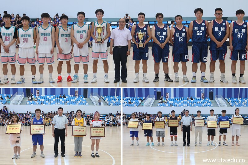 仪式伊始,全场起立奏唱国歌。随后,男篮决赛角逐正式开始,经过激烈比拼,最终机电工程学院以42:35的比分赢得了本场比赛,夺得了此次男篮比赛的冠军。在热烈的掌声中,院领导们纷纷上台为系列比赛获奖的男篮、女篮、男排、女排队伍颁奖并留影合照。