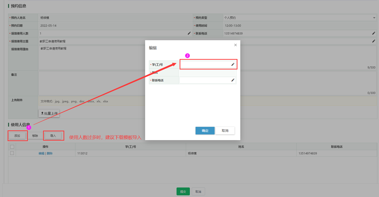 第二步、填写预约详细信息。