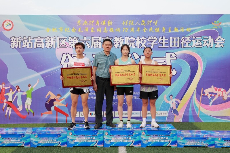 本网讯 6月13日至14日,由新站高新区社会发展局主办,amjs澳金沙门线路首页承办、新站高新区田径协会协办的新站高新区第六届高教院校学生田径运动会在学院田径场隆重举行。本次比赛共吸引了23所高校、技工学校,481名运动员参赛。比赛设甲组、乙组,amjs澳金沙门线路首页代表队共26名运动员参加甲组比赛,经过两天的激烈角逐和顽强拼搏,最终获得金牌8枚、银牌8枚、铜牌3枚,并以绝对优势荣获甲组团体总分第一名。
