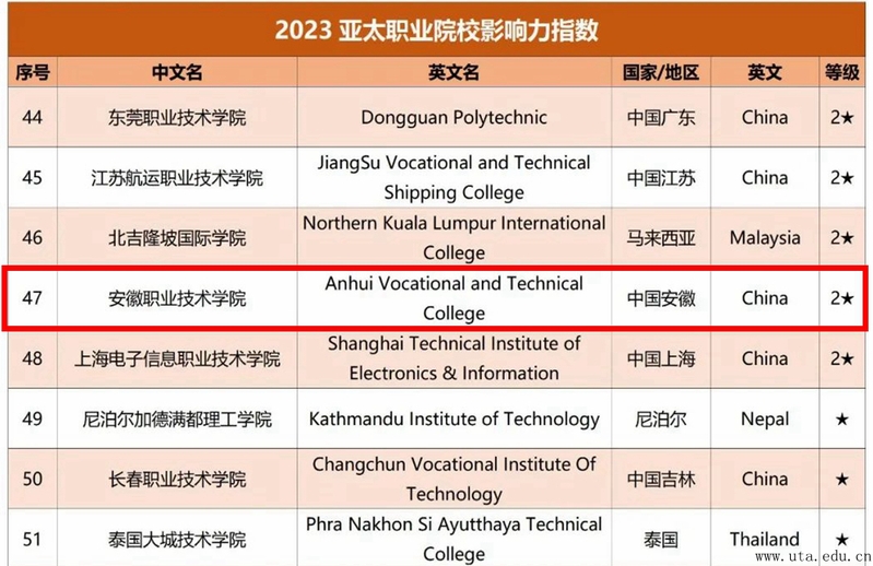 学院入选2023亚太职业院校影响力指数星级院校和2023亚太职业院校特色合作示范项目名单