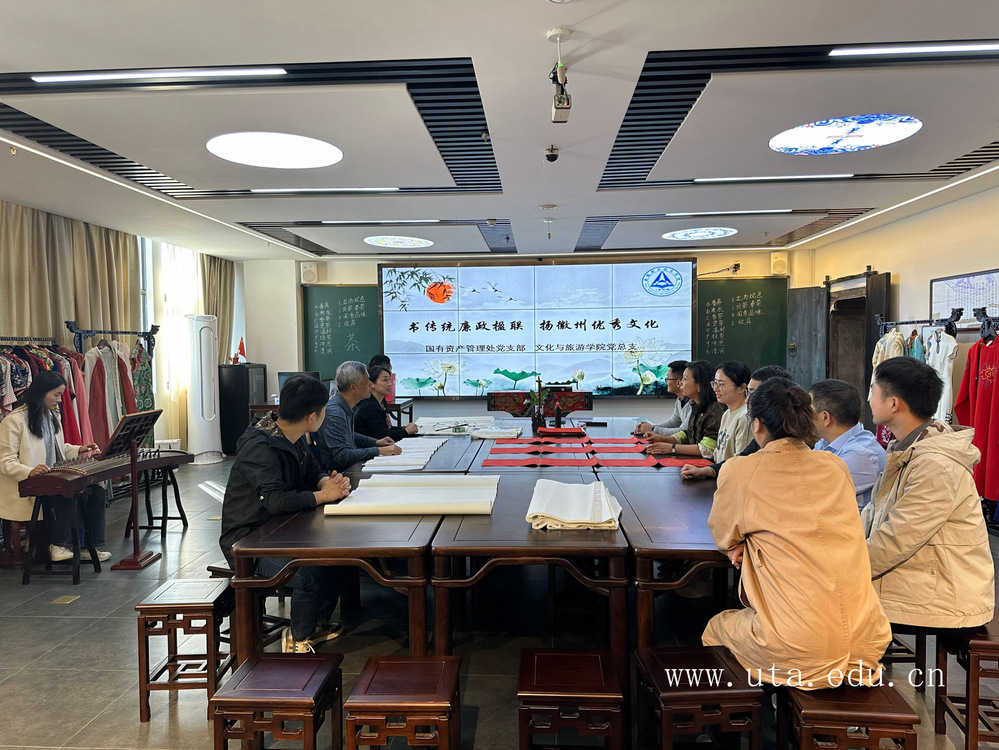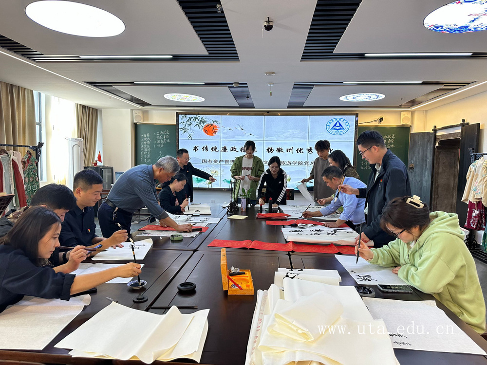为深入学习贯彻党的二十大精神,持续推进党风廉政建设,营造风清气正的干事创业环境,10月20日,国有资产管理处党支部与文化旅游学院党总支在徽文化实践教学基地共同举办“书传统廉政楹联,扬徽州优秀文化”廉政文化活动。