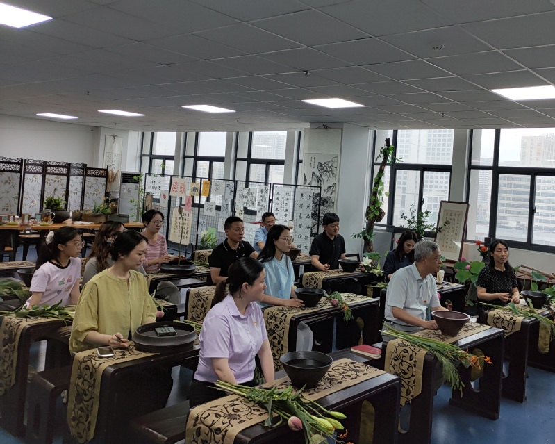 活动以荷为主题,赏荷、书荷、绘荷,并以荷花作为主要的插花素材进行荷花插作。在中国传统文化中,荷花从古至今就是一种美和高洁的象征,古人也以“一品清莲”表达对清官的赞誉,“莲”乃花中君子,“廉”为人之正品,莲花之“莲”与廉洁之“廉”音相同,寓意清廉、廉洁。活动中,党员教师们动手创作,共同参与,一幅幅书画、插花作品赏心悦目。